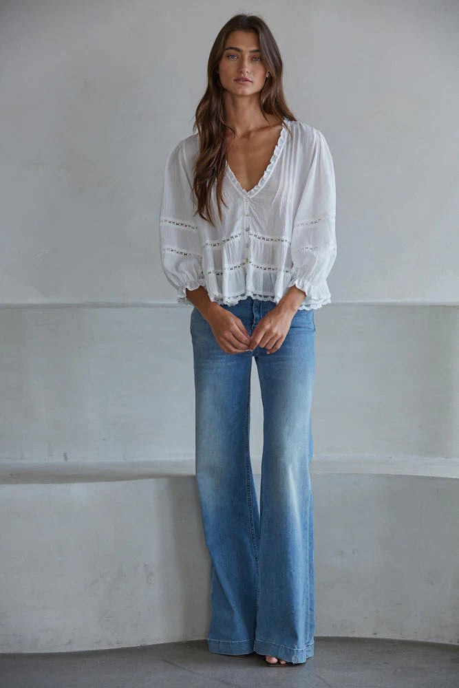 Elevate your wardrobe with the Alyssa Blouse Top—a sophisticated staple that transitions seamlessly from season to season. This beautifully crafted piece features premium woven cotton that breathes with you throughout the day, while the elegant V-neckline and quarter-length sleeves offer flattering proportions whether you layer or go solo. Practical front buttons give you effortless styling control, and delicate lace detailing adds that refined, polished finish you've been searching for. Dress it down with your favorite jeans or dress it up with tailored trousers—this versatile blouse becomes the go-to piece you'll reach for again and again.
