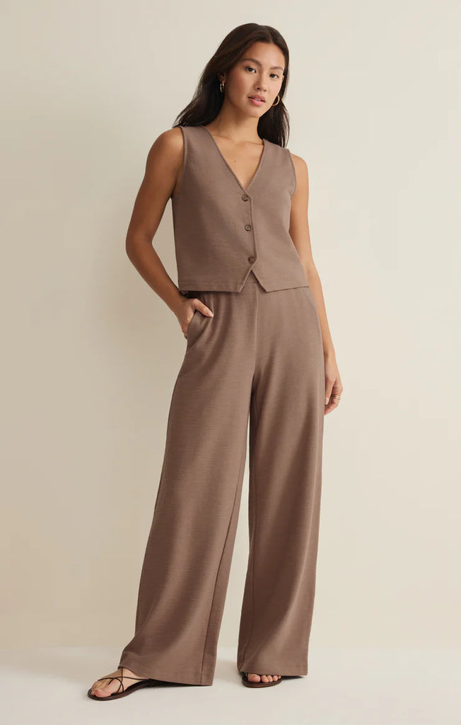 Featuring an elastic waistband, high rise fit, and side pockets, this lightweight pant moves gracefully with you. Complete the look with the Noelle Textured Tank Top.