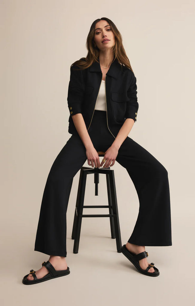 Casual yet elevated and made to move, these modal fleece pants bring a little structure to your everyday look. The straight leg, high-rise fit, and flat front with a box pleat give it a put-together feel, while the elastic waistband and slash pockets keep it relaxed.