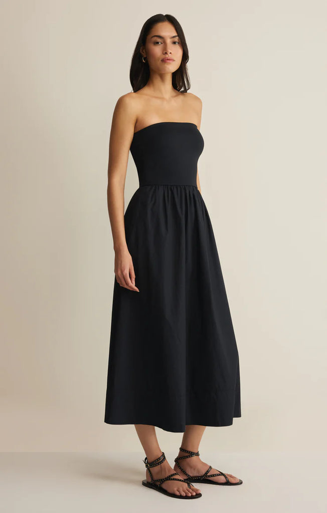 This strapless midi dress features a fitted bodice crafted in our Luxe So Smooth fabric, paired with a lightweight poplin skirt for easy movement. Designed to feel effortless from day into evening, it's a warm-weather go-to.